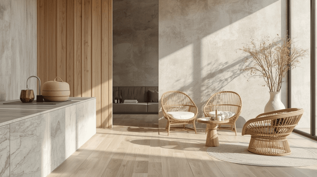 3. Materiali naturali: legno, pietra e rattan per profondità ed eleganza