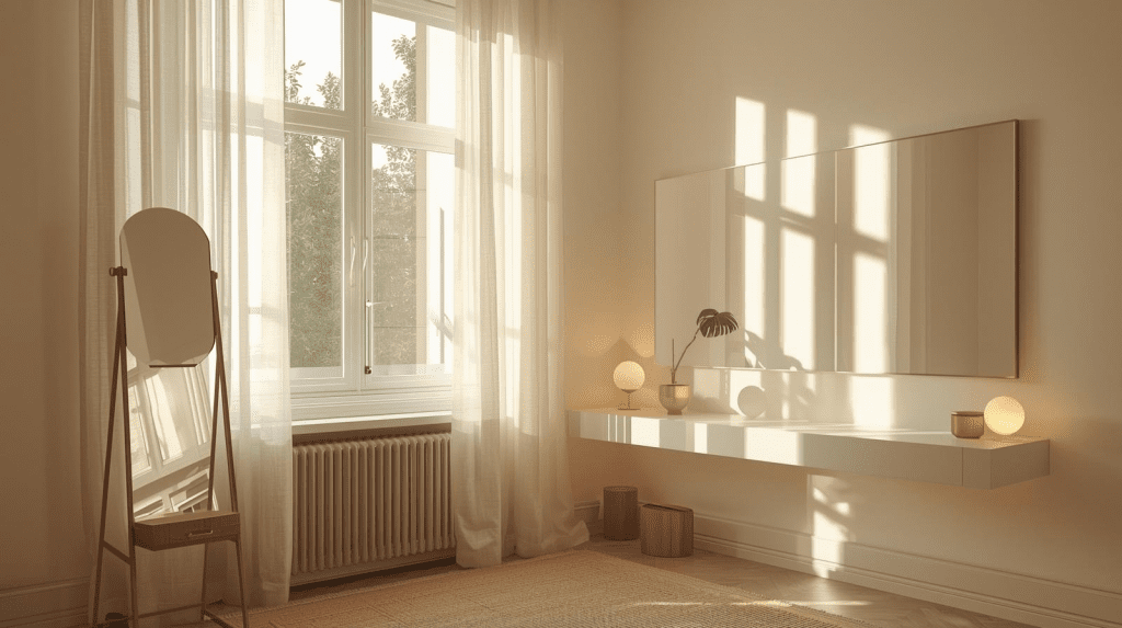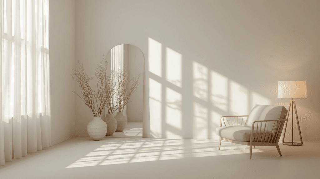 Illuminazione strategica: combina luce naturale e lampade calde per creare ambienti luminosi e confortevoli. Specchi: riflettono la luce e ampliano visivamente lo spazio. Ordine e decluttering: superfici libere valorizzano ogni scelta di design minimal.